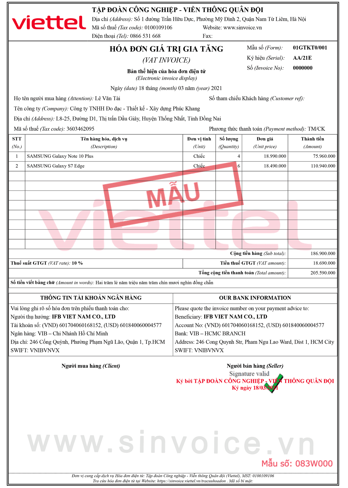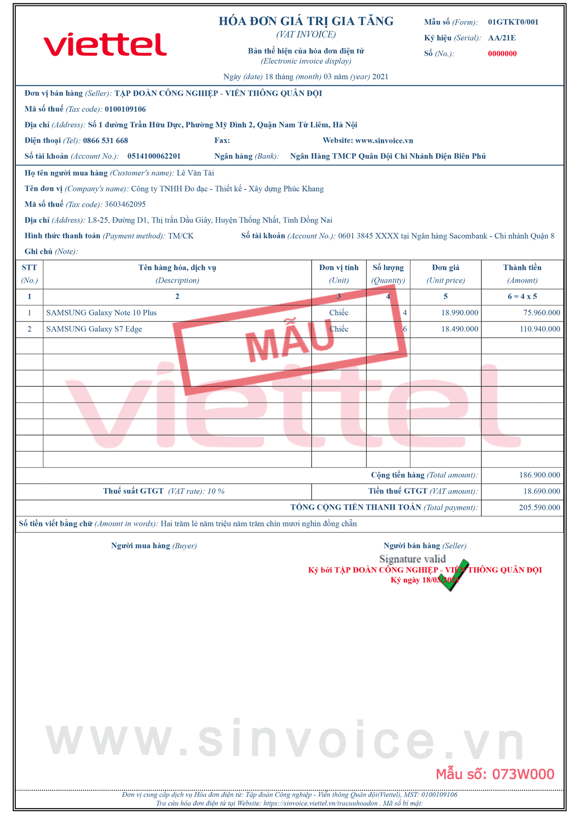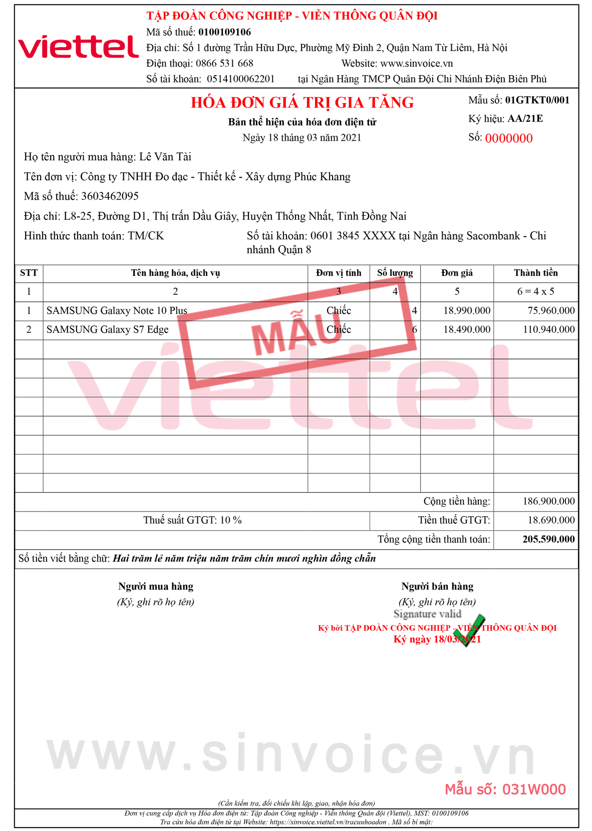 Việc sở hữu một mẫu hóa đơn điện tử đẹp sẽ tạo được ấn tượng đối với khách hàng/người mua hàng. Viettel xin giới thiệu đến quý khách hàng hơn 100 mẫu hóa đơn điện tử đẹp được thiết kế phù hợp với yêu cầu về hóa đơn điện tử của Bộ Tài chính.